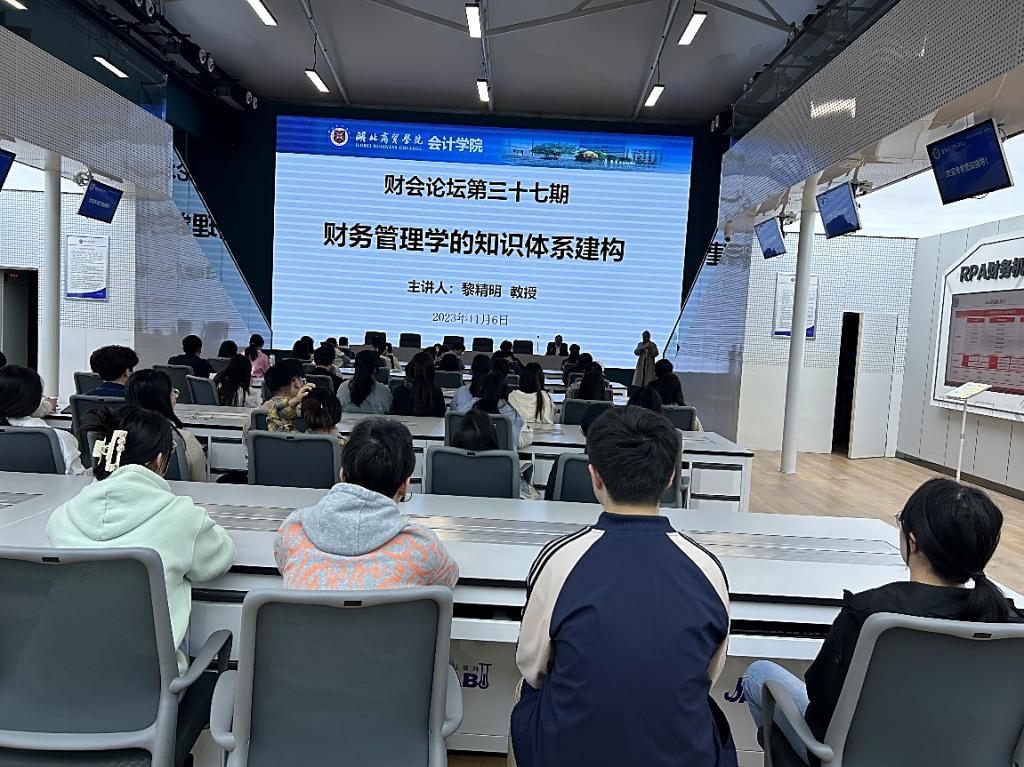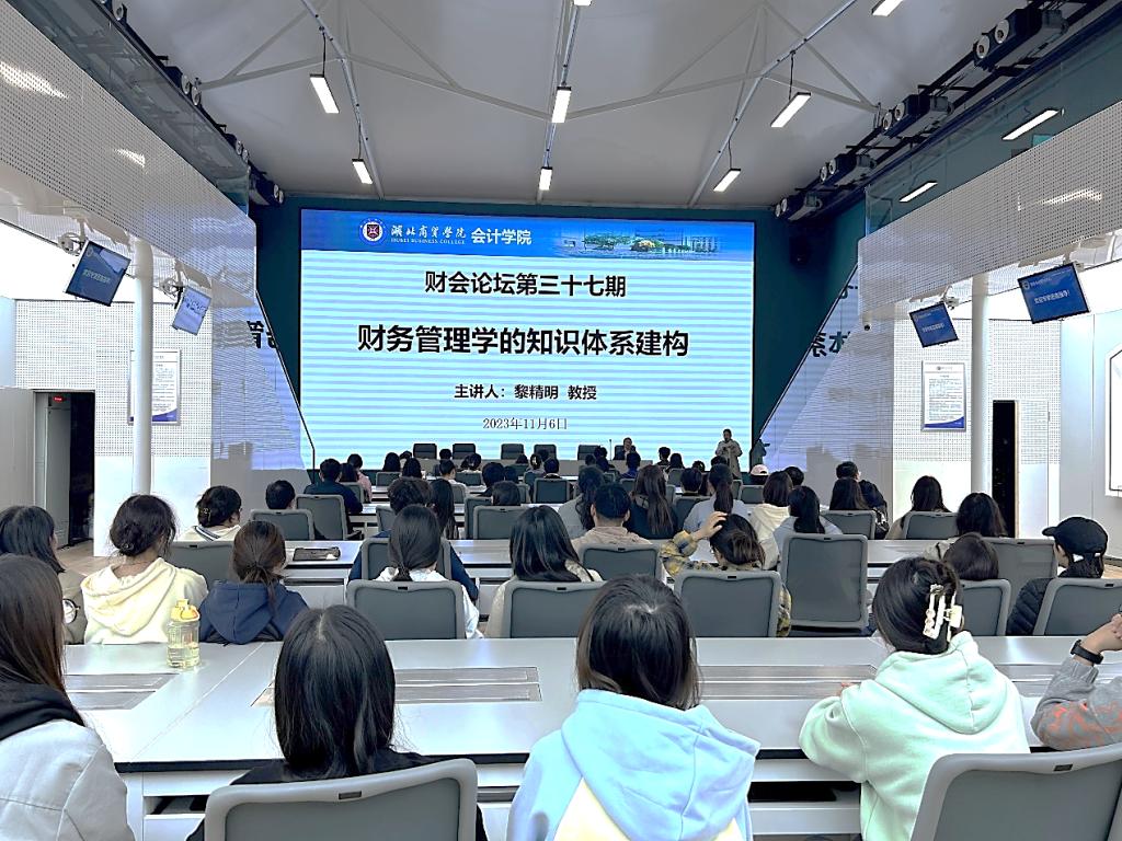 2023年11月6日晚上,球王会邀请黎精明教授在武汉校区智能会计学习中心开展了关于《财务管理学的知识体系建构》的专题讲座。黎教授作为球王会特聘教授,是武汉科技大学恒大管理公司教授、博士生导师,全国先进会计工作者、湖北省首批会计领军人才。黎教授主要研究方向为制度与行为财务、财务分析与评价、预算管理与内部控制、环境与绿色会计等。此次为球王会大三员工进行宣讲,详细解读了关于《财务管理学的知识体系建构》的相关专业知识。