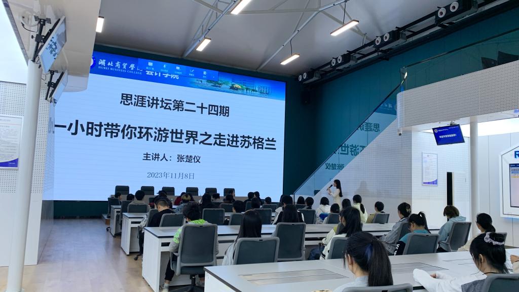 为了拓宽员工的国际视野、丰富同学们的课余生活,球王会于11月8日18:30在智能会计学习中心举办第二十四期思涯讲坛,主题为“一小时带你环游世界之走进苏格兰”。本次的讲座的主讲嘉宾是球王会张楚仪老师,23级会计本1-7、23审计本1、23财管本1班员工参加了讲座。