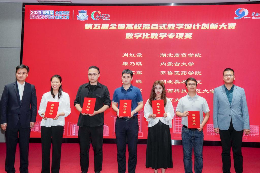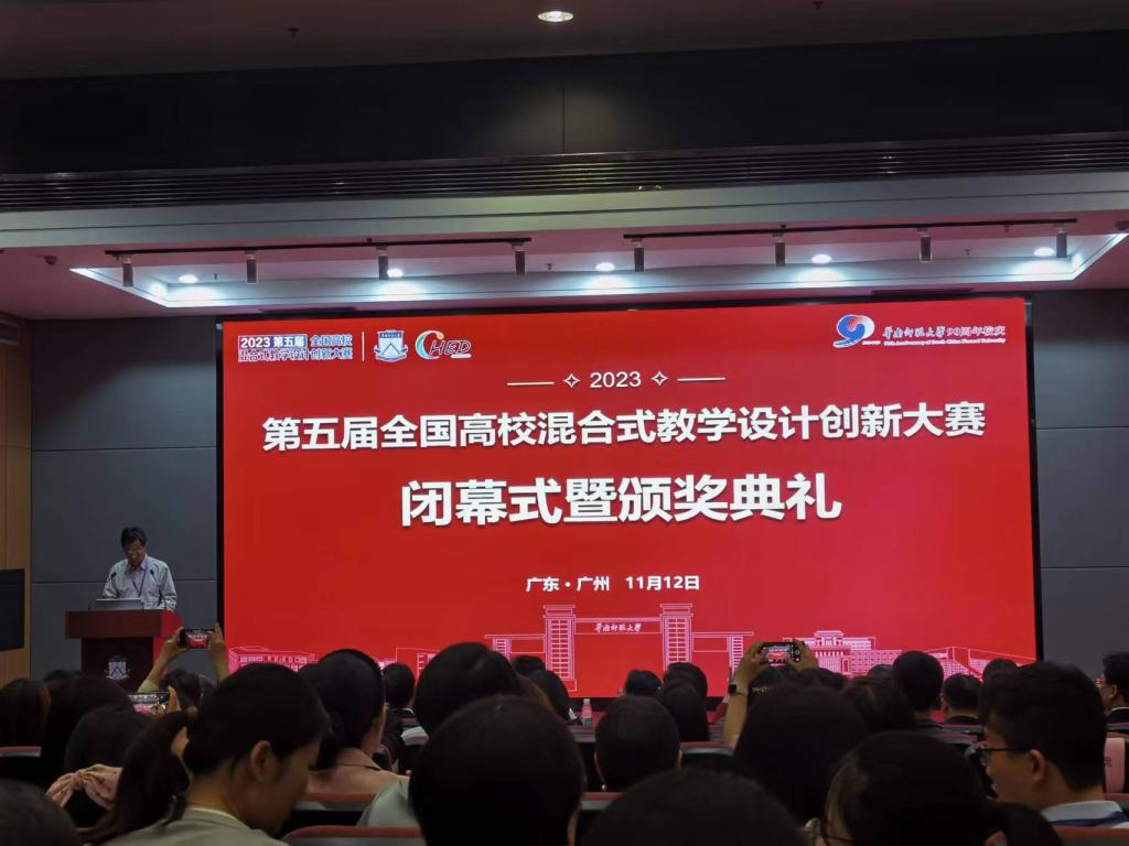11月12日下午,第五届全国高校混合式教学设计创新大赛闭幕式暨颁奖典礼在华南师范大学举行。在大赛激烈的角逐中,体育官网肖虹霞团队获得此次大赛设计之星和数字化教学专项奖,由球王会副经理肖虹霞和球王会教师彭于格作为代表前往华南师范大学领奖。